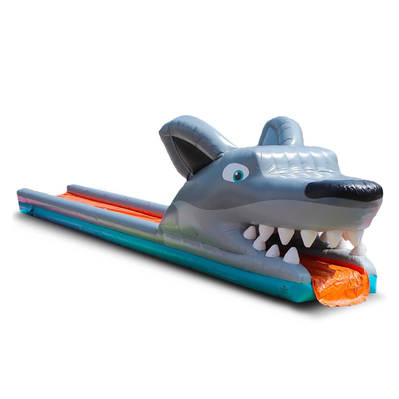 Prenez de l'élan et plongez la tête la première sur cette piste de glisse gonflable ! Le Ventriglisse Loup sera l'animation phare de votre aire d'activité extérieure. Cette longue piste de glisse de 18 mètres de long vous permettra d'organiser des grandes glissades.