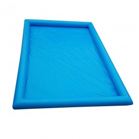 Un bassin gonflable bleu de 12m x 8m pour accueillir des activités aquatiques comme du bateau tamponneur ou des bulles aquatiques.