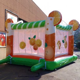 Le château orangeade est un jeu gonflable pour enfants avec un espace de saut ainsi qu'un obstacle en forme d'orange. Un jeu rafraîchissant !