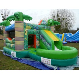 Ce château gonflable Jungle est une structure fermée composée de quatre murs gonflables et d'un toit. Les enfants y seront en sécurité et ne pourront entrer et sortir du jeu que par la petite entrée sur le devant du jeu. Des filets de protection permettent aux adultes de pouvoir surveiller les enfants à l'intérieur du jeu. Pour une sécurité maximale, la sortie du toboggan est également équipée de parois gonflables. Autre point positif de cette structure : les enfants n'ont pas à sortir de l'attraction pour recommencer à jouer. En effet, le toboggan est totalement intégré au château gonflable.