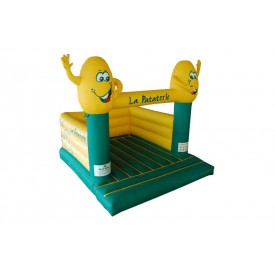 Ce château Gonflable sur-mesure a été fabriqué spécialement pour les restaurants Pataterie. Cette version possède un grand matelas de saut sans obstacles. Deux mascottes surplombent l'entrée du jeu gonflable et le nom du restaurant figure sur une arche centrale entre les mascottes. Ce jeu gonflable est un bon moyen de dynamiser une aire de jeux extérieure et même de se faire de la publicité avec une structure gonflable à vos couleurs que tout le monde verra de loin. Nous avons réalisé un second jeu gonflable pour les restaurants Pataterie, celui-ci est doté d'un toit.